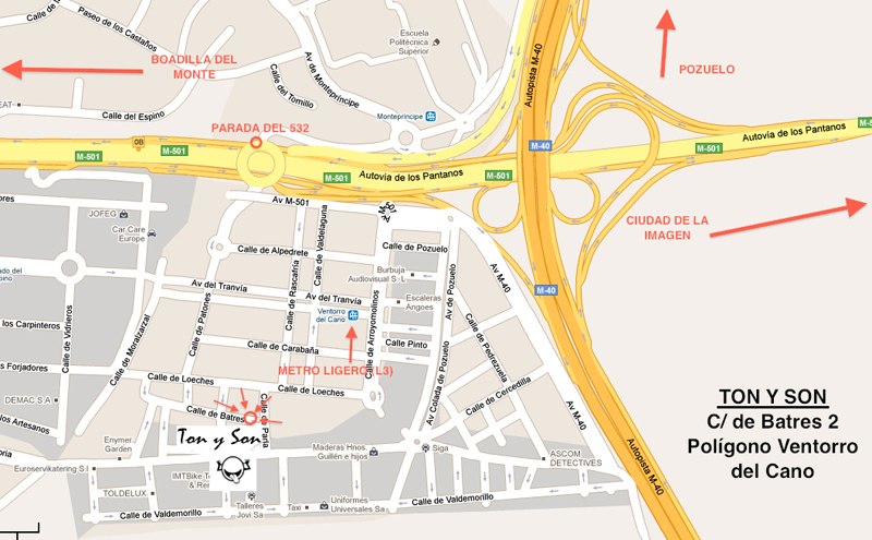 Nuestras salas de ensayo están muy bien situados, entre Boadilla del Monte y Ciudad de la Imagen, muy cerca de Alcorcón, Majadahonda, Pozuelo y Las Rozas.